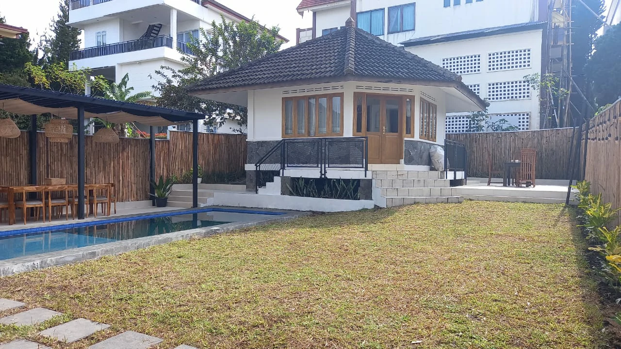 Villa Sunset Istana Bunga Bandung Fasilitas Kolam Renang memiliki bangunan 2 lntai dengan type villa 3 kamar ini bisa menjadi